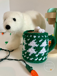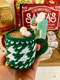 The pattern contains steps-by-steps instructions to crochet an adorable fair isle Christmas tree mug that is perfect for a festive play kitchen. The pattern also contains pictures to help you along the way.