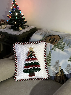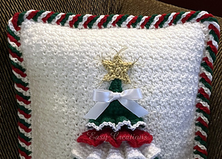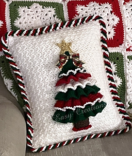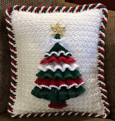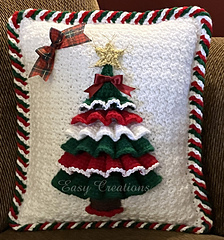 Decorative Ruffled Christmas Tree Pillow. Finished size is approximately 14” X 16”