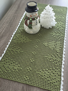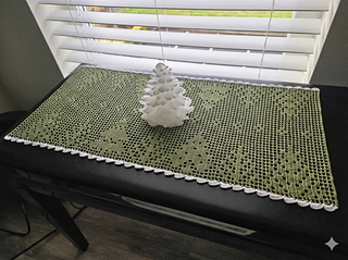 This elegant runner features a timeless row of Christmas trees created using the filet crochet technique, where open and solid blocks come together to form a clean, graphic design that looks far more intricate than it actually is.