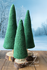 The trees are worked in the round, creating a sturdy cone shape that can be customized with colors, embellishments, or festive toppers.