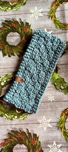 If you use the 2 strands of worsted weight yarn held together, you will get a very warm and heavy duty headband. It will keep those ears warm on the coldest of days. (I used 2 strands of Soft Donegal from Studio Donegal in shade 2Bc5519 - the blue/grey headband pictured)