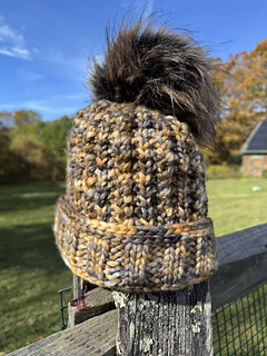 This soft and fluffy hat knits up quickly in the beautiful colors of Herd of Cats, Road Trip yarns. The pattern is written for one size only but can be altered by increasing or decreasing the needle size.