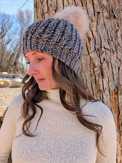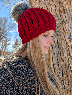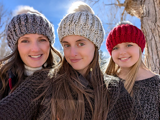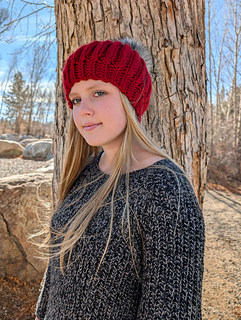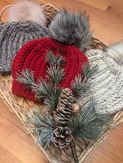 This pattern is size-inclusive, with instructions ranging from 1-year-old through Adult Large, making it perfect for gifting, selling, or matching family sets. The thick, bulky yarn gives it that ultra-warm, plush feel, and the faux fur pom-pom adds the cutest stylish finish.