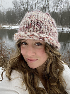 Get warm and cozy this winter with this fun, rolled-brim hat. I designed this hat with the beginner in mind. This hat utilizes one stitch: knit only! Easy crown. Hat is knit in the round. 6 sizes. Hat is designed for those with a head size of 16, 18, 20, 21, 22, 23”. This hat can be knit very quickly. I knit mine in 1-2 hours.