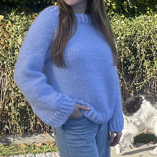 The body and sleeves are knit in the round after separating at the underarms. With no seaming required, the construction is straightforward and beginner-friendly. The oversized ease and relaxed fit make it adaptable to a wide range of body types.