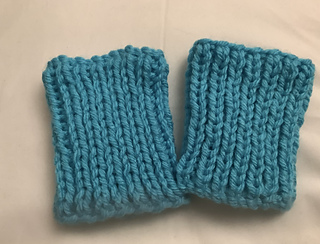 These little wrist cuffs are ideal for wearing under a jacket to keep the drafts from your arms. They are knitted in knit 1, purl 1 rib. For a longer cuff just add more rows.