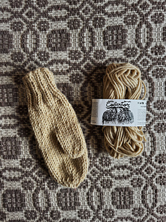 The mittens are knitted in the round, from the wrist up, on 5 double-pointed needles. Waste yarn is used to create the opening for the thumb. Shaping is done using the traditional Portuguese technique.