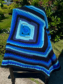 Blanket starts in the center and grows with each round. Use self striping yarn or a solid color. Can be a baby gift or a throw for yourself.