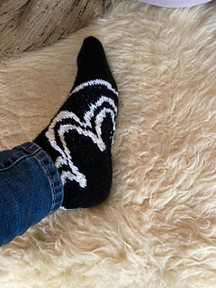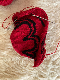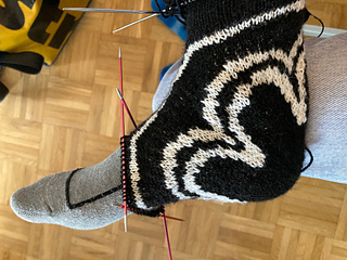 The idea of starting a sock around the heel and using this construction method to showcase unique motifs is not my own. I was inspired by the socks of Cita Steinmeier (https://www.ravelry.com/designers/cita-steinmeier). I immediately knew I wanted to create something similar using this particular motif.
