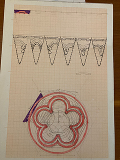 The Cinquefoil Socks were inspired by Gothic tracery, which happened to be the logo of my old school (“the Semi”). Because of this, they are dear to my heart—as they are to many of my friends. However, the motif itself is beautiful regardless of personal associations. The explanation above also justifies the suggested yarn colours (for 1MC+1CC), but of course, you can use any colour you like.