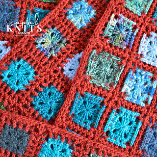 This design uses a “join-as-you-go” assembly method, and I have included detailed schematics to show how to join your motifs. It is also a super-easy design that is perfect for using up scrap fingering weight/4-ply yarn or showcasing beautiful long colour gradient yarns.