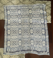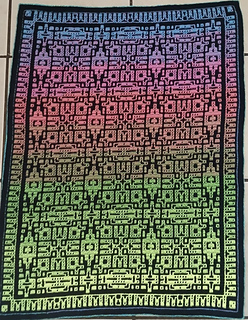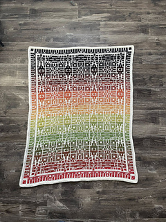 This blanket is 177 stitches wide by 233 rows high and measures approximately 51” by 67” (129cm by 169cm) in worsted weight yarn. You will need approximately 1749 yards (1599 meters) of color A and 1979 yards (1810 meters) of color B to complete this pattern.
