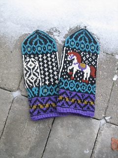 Similar in design to Horses mittens, but a tad narrower, with 68 sts around palm.