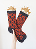 Disponibles en 3 tailles : 56, 64 et 72 mailles, elles se tricotent des côtes vers la pointe. Le talon est en rangs raccourcis et la pointe est tout ce qu’il y a de plus classique. Vous êtes libres néanmoins d’adapter le talon et la pointe selon les méthodes que vous préférez. Le jacquard se tricote d’après un diagramme adapté pour chaque taille. Je vous conseille de tricoter les sections en jacquard avec des aiguilles d’une taille supérieure à celles que vous utiliserez pour les côtes, le talon et la pointe, afin de permettre une meilleure élasticité. Le croisement des fils est à votre discrétion.