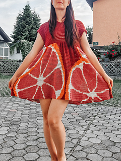 The Citrus Dress is a playful, breezy crochet dress that feels like a burst of sunshine in your wardrobe. Inspired by lazy summer days and fresh fruit vibes, it’s designed to be fun, bold, and totally wearable.