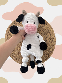 Clara Cow Snuggler © 2025 BBadorables - All rights reserved. This pattern is for personal use only. This pattern or parts of it must not be reproduced or published (printed or online), altered, resold or used for commercial purposes. You can sell items made from this pattern, provided that they are handmade by yourself in a limited number and you give credit to me as the designer. Thank you!