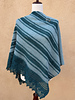 This pattern was designed to use an either a 6 or an 8-10 mini skein set for the stripe sections in the body, alternating with either suri alpaca or mohair, and a coordinating color for the lace border. The Large size gradient sample was knit with Hue Loco’s Cider & Cypress Mini Skein Set, along with 1 skein of the Merino Sock in the colorway Magpie for the border color, with Lana Grossa’a Setasuri in taupe. The Regular size teal sample was knit with all Hue Loco Yarn; Merino Sock in the colorway Agate set against their Suri Alpaca in Sage. The color options are endless!