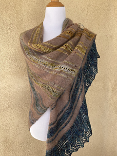 A collaboration with Hue Loco Yarn, Classic Cornwall is the final Cornwall shawl, completing the Cornwall Trilogy Of Shawls. This is a more classic take on the original Cornwall Coast pattern that started it all. Offered in regular and large size, Classic Cornwall is a slightly asymmetrical triangular shawl that has the textbook “waves” and a modified Cornwall Coast lace border! Fingering weight yarn of your choosing is knit in alternating bands along with Suri Alpaca/Mohair making for a very colorful and light as air shawl! The color combinations here are endless!