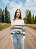 Everyday sweater for layering over tees or dresses. The relaxed fabric feels light but cozy; stripes add a classic, sporty vibe.