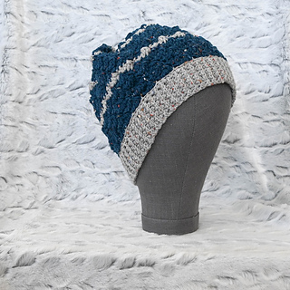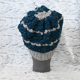 The yarn I used for this project is now discontinued: Hooks & Needles Woodland Whisper (97% Merino wool, 3% rayon, 1.75 oz/50 g, 92 yd/84 m) in 19 Dark Blue (CA) and 1 Grey (CB).