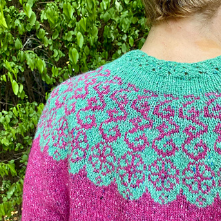 “Clori” (il nome della dea dei fiori greca) è un maglione oversized, lavorato dall’alto verso il basso in un unico pezzo senza cuciture.