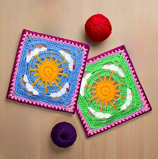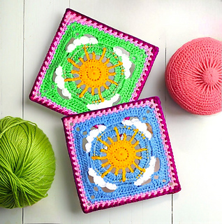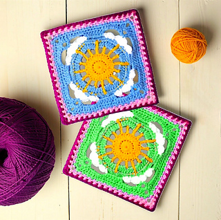 This sun granny square with a sweet crochet cloud design is a cute crochet pattern perfect for bright spring home decor and cheerful summer style projects ☀️☁️.
