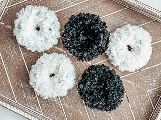 This pattern will take less then 5 minutes to make and you will get 7-8 hair ties out of 1 skein of Lion Brand Go for Faux T&Q yarn.