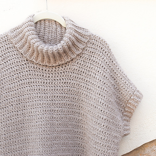 - The poncho is worked bottom up in two panels: one back panel and one front panel. The finishing of the cowl neck and armholes are crocheted onto the body once it’s sewn.
