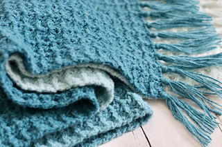 I love the texture in this crochet scarf. and the texture is so easy to work! You may remember not too long ago I published the Sweet as Honey Blanket. It was worked in a beautifully textured, double sided 3D shell stitch. It has a similar look to a honeycomb stitch, but it is much easier and more light weight.