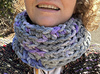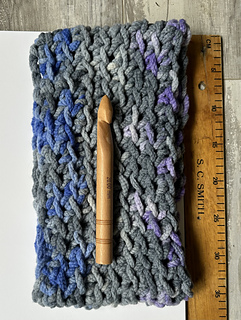 This warm snuggly cowl was designed to showcase the Cloud or Rope yarn from White Gum Wools. It uses a single 150g ball of the Super bulky yarn. It is very quick to make with testers saying it took between 50 to 90 minutes to make the whole cowl. It uses Back loop Single crochet stitches to provide texture. It can be made with solid colours, vareigated yarns or the gradient cakes dyed by Changeling Coloured Yarns.