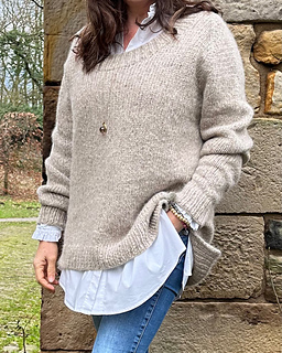 Light as a feather with a relaxed fit, cosy long sleeves and a generous round neck, CLOUDDANCING Sweater is knitted in one piece from the top down.