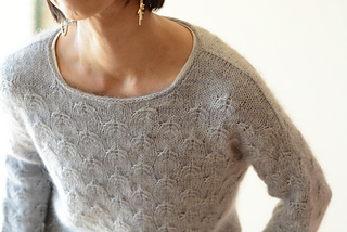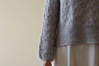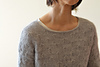 First, two I-cords are knit and stitches are picked up for the back and front along the I-cord edges. German short rows are used to shape the shoulders, then the front and back of the pullover are worked back and forth separately to the underarm. They are then joined and worked in the round in one piece to the hem. Sleeves sts are picked up around the arm openings and worked down in the round.