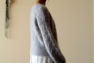 まず2本のI-コードを編み, I-コードの端から前後の編み目を拾い出す. ドイツ式引き返し編みで肩の形を整え, 前後身頃を別々に脇下まで編む. 脇下で前後身頃を繋げたら, 裾まで一続きで輪編みする. 袖は袖開きから目を拾い, 袖口に向かって輪で編む. 全ての縁編みはI-コードで仕上げる.