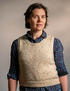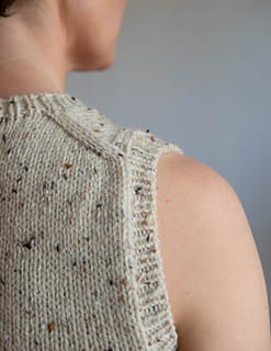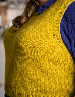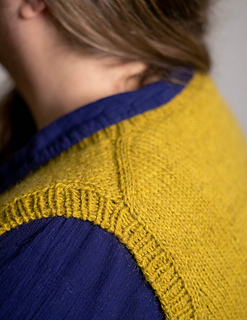 The Clova Slipover features a comfortable, tailored shoulder line sometimes known as English Tailoring or a European Shoulder. The upper back is worked first, with increases to slope the shoulders and short rows to add a comfortable curve at the neckline. The upper front is then worked on stitches picked up along the back shoulders with a slightly scooped crew neck. The armholes are thoughtfully shaped for a neat fit and comfortable layering. Larger cup size options add extra width across the bust and (almost) hidden short rows with no visible wedge of darts. The upper back and front are joined at the underarm and the body is worked in the round and completed with a simple ribbed border. Matching ribbed bands are then worked around the neckline and armholes.