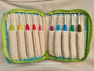 This zippered case was designed to fit an entire set of Clover Amour crochet hooks with ergonomic handles. By changing the case height, this pattern can be adapted to fit other hooks with ergonomic handles.