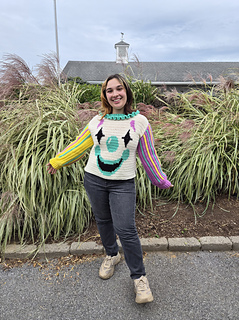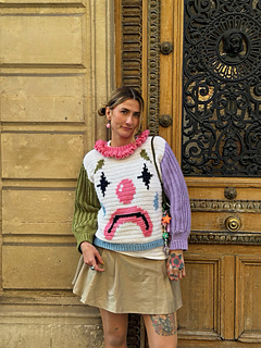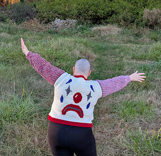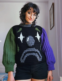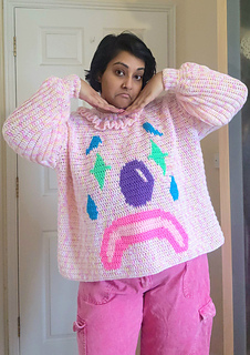 This is a listing for a digital PDF crochet pattern. Not a finished item. This crochet pattern will create a cropped, oversized, reversible pullover with an optional ruffled collar