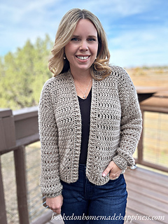 The Cluster Cardigan Crochet Pattern has some gorgeous texture that’s created by using a variety of stitches! This cardigan is made as almost one piece. This is one of my favorite ways to make a cardigan because it requires very little sewing!