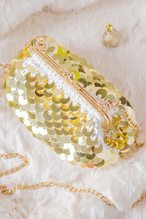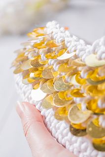 Meet your new holiday essential - and your year-round statement piece! This dazzling clutch is crafted in one simple spiral of single crochet, requiring just 3-4 hours from start to finish. Using thick white macrame cord for a perfectly structured shape and golden sequins crocheted directly into the fabric, it’s instant celebratory glamour. Perfect for Christmas parties, cocktail evenings, or a dazzling night out, this clutch is designed to make you sparkle.