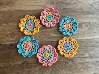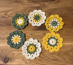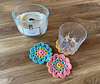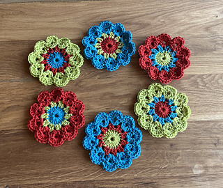 The coasters on the photo are crocheted with coton and are 9 cm.