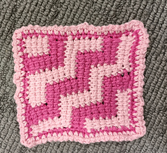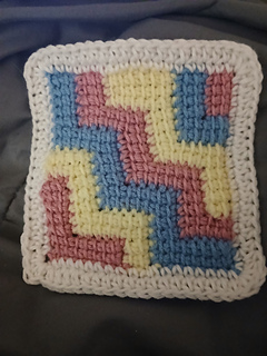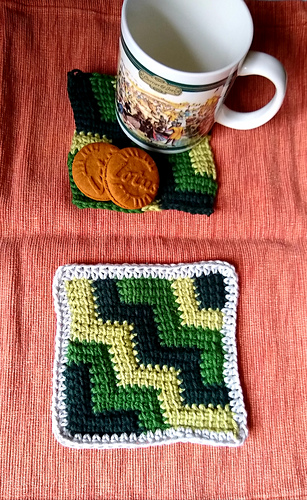 The coaster is an example for a geometric stairs motif described in the pattern.