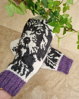 Mönstret börjar med 68 maskor och ökar till 80, om du stickar löst behöver du sticka med 2 mm stickor. Jag gillar att ha många maskor för att få plats med så mycket mönster som möjligt på mina vantar.
