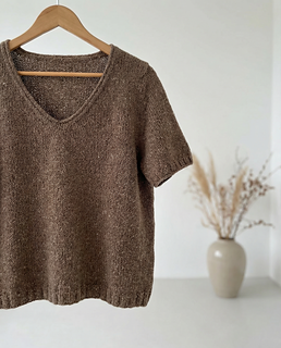 Es wird top down gestrickt, mit einer nach hinten versetzten Schulternaht. Nach der Schulterkonstruktion werden die Arme direkt eingestrickt und durch eine regelmäßige Anprobe strickst du dein perfektes Shirt.