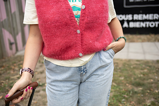 Le gilet sans manche Coco est un projet rapide et simple à tricoter. Il se travaille du haut vers le bas avec des emmanchures larges. Il se porte au-dessus d’une blouse ou d’un t-shirt, à la mi-saison comme en hiver. C’est un modèle facile à porter et à décliner.