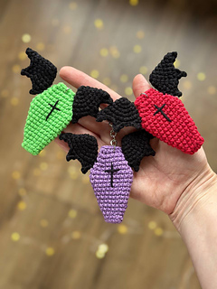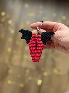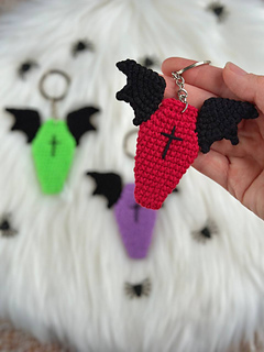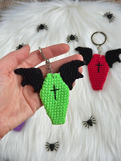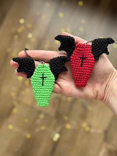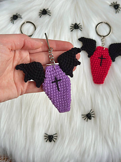 You’ll find here crochet pattern for Coffin With Wings keychains. This fun amigurumi PDF pattern includes written instructions and step by step pictures and video that explain how to crochet these coffins.