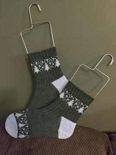 I always dreamed about designing a pair of socks in a perfect forest green with white contrast of trees and snowflakes. Perfect to wear all winter long these socks will definitely be a pleasure to knit!