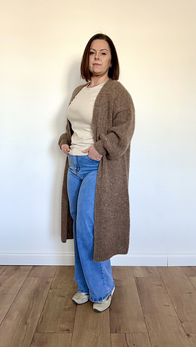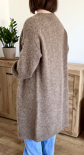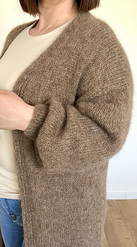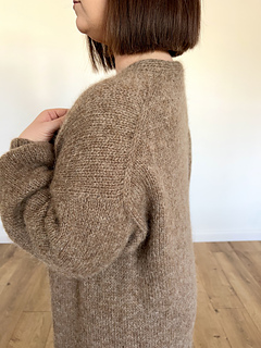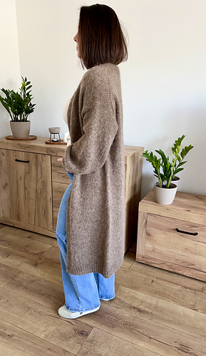 The cardigan is worked top-down, flat and seamlessly. Sleeves are worked in the round. Neck shaping is achieved through increases, while the body is worked straight to create a comfortable, easy-to-wear silhouette.