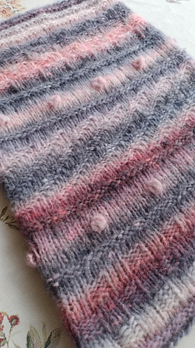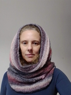 Questo è un collo alto ed avvolgente che può essere utilizzato anche come cappuccio per proteggersi dal freddo. È un progetto semplice da realizzare, che nasce dalla combinazione di punti diritti e rovesci, con qualche nocciolina ed un piccolo trucchetto nella parte centrale lavorata a coste diagonali. La sezione finale può essere utilizzata come esercizio per imparare a leggere un semplice schema di maglia.