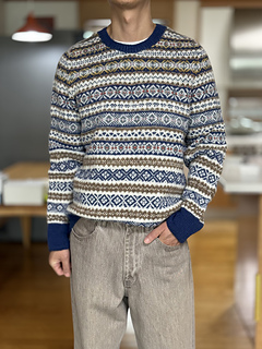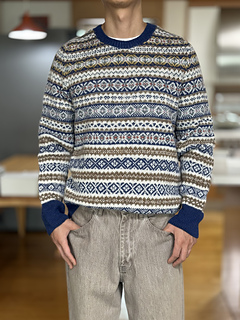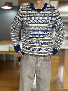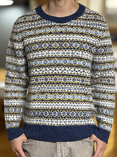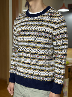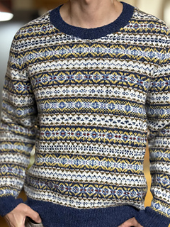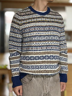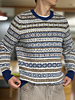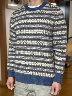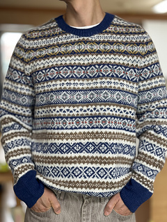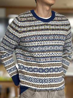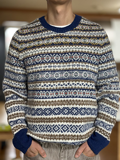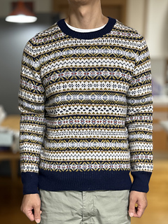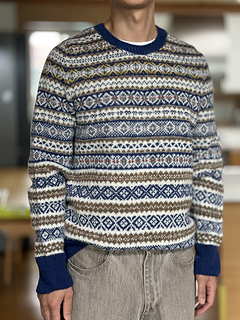This sweater is designed using Merino yarns by Knitting for Olive and explores colour harmony through geometric Fair Isle motifs.