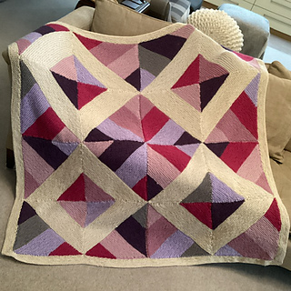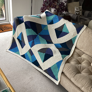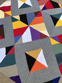 A brilliant collection of colors come together to form a mosaic of shapes. A simple blanket to knit – all garter stitch – which results in a complex geometric design.