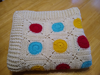 This pattern is for a single granny square, but can be used to create a blanket of whatever size you choose! For a 40” x 60” blanket, I typically create 35 squares, using between 10 and 12 skeins of LB Wool Ease Thick & Quick.